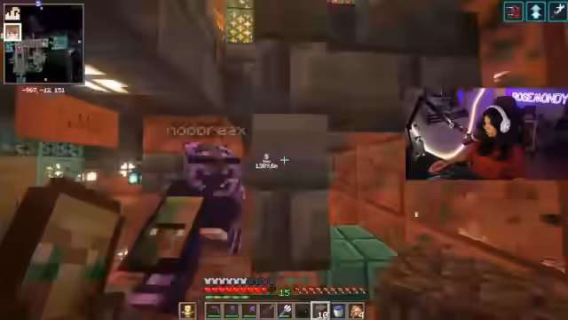 04:41:30Die Streamer erkunden die Spielwelt und entdecken dabei besondere Mechaniken. Rosemondy wird von Noriax angeleitet, sich an einer bestimmten Stelle zu positionieren, um einen Flug mit der Elytra zu demonstrieren. Sie fliegt in die Höhe und erlebt den Anblick als 'erste Frau auf dem Mond', was sie sehr beeindruckt. Es wird erklärt, dass man in Minecraft nur bis zu einer Höhe von 320 Blöcken bauen kann und dieser Flug eine besondere Möglichkeit darstellt, diese Grenzen zu überschreiten. Später wird auch die Mechanik des Dreizacks im Regen erklärt, die es ermöglicht, in der Luft zu bleiben, solange man sich nicht in einem Wüstenbiom befindet. Diese Interaktionen und Erklärungen bieten den Zuschauern Einblicke in fortgeschrittene Spieltechniken und die Kreativität der Spielwelt.