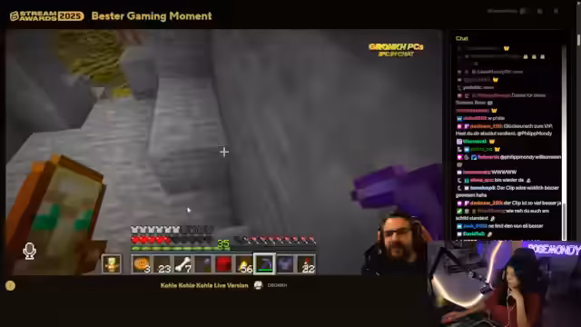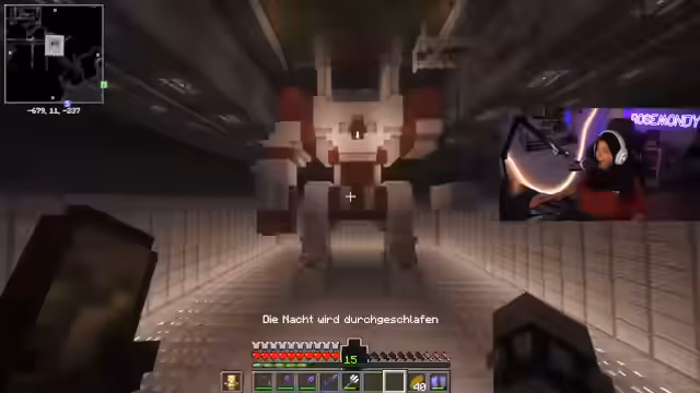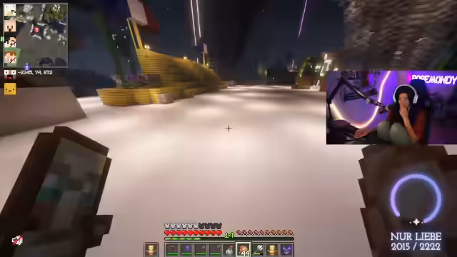 07:44:06Es wird über die Planung eines 24-Stunden-Streams gesprochen, wobei die Sprecherin überlegt, diesen auf zwei 12-Stunden-Streams aufzuteilen, um Schlaf zu ermöglichen, da sie 24-Stunden-Streams als zu anstrengend empfindet. Ein Kollege, Rohat, hat sie zu einem Comeback-Stream in einem Gefängnis eingeladen, der 30 bis 45 Minuten entfernt ist. Sie ist unentschlossen, da sie nach einer Woche Abwesenheit lieber zu Hause bleiben möchte. Es wird gefragt, ob ein Happy Ghast angebunden werden kann, und es wird erklärt, dass er in einem 64-Block-Radius um den Spieler herumfliegt, wenn man ihn nicht festhält. Die Möglichkeit, ihn zu benennen, wird getestet und der Ghast erhält den Namen 'Gasper'. Es wird humorvoll über die Namenswahl diskutiert. Der Döner-Spieß auf dem Eiffelturm wird gelobt und die Idee, Pistons zu verwenden, um ein Döner-Messer zu imitieren, wird als potenziell umsetzbar befunden. Es wird nach einem Clip gesucht, in dem Basti ein Lutra platziert. Der Verlust von Redstone-Fackeln und Redstone-Staub wird festgestellt, und es wird vermutet, dass es durch Wasser weggespült wurde, was durch einen früheren Vorfall mit Fabo und Beton bestätigt wird.