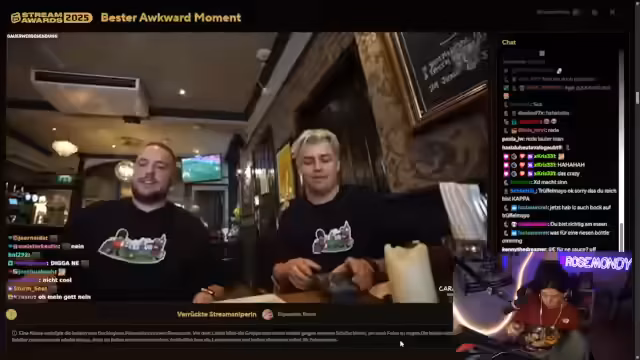 04:39:40Im Stream wird über verschiedene Auszeichnungen und Titel gesprochen. Noriax, der sich selbst als 'Newcomer of the Year' bezeichnet, wird von anderen noch als 'Naughty' wahrgenommen, ein Titel, den er vor zwei Jahren trug. Es wird auch erwähnt, dass Zavex diesen Titel letztes Jahr innehatte. Rosemondy teilt mit, dass sie 'Streamerin des Jahres' von Early Game geworden ist, obwohl sie die Seite der Early Game Betrüger Awards als 'shady' empfindet. Trotzdem freut sie sich über den Pokal, der gut im Schrank aussieht. Diese Diskussionen zeigen die Bedeutung von Anerkennung und Titeln in der Streaming-Community, auch wenn die Quellen manchmal kritisch hinterfragt werden.
