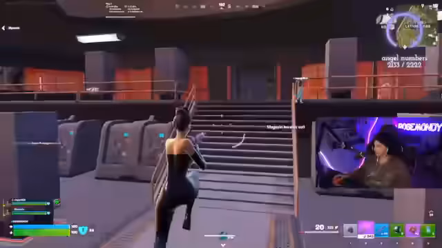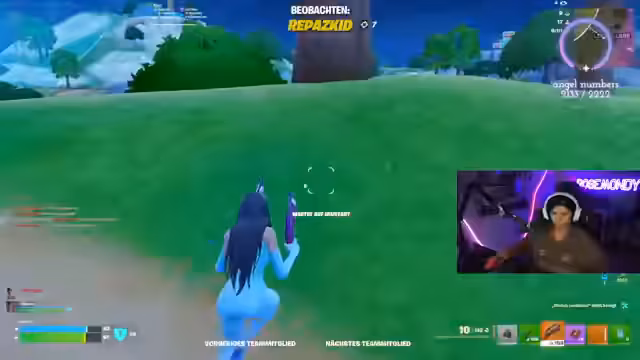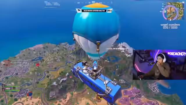 06:05:51Zwischen 21951 und 23500 Sekunden konzentriert sich das Geschehen auf ein intensives Fortnite-Match. Die Spieler arbeiten als Team zusammen, reviven sich gegenseitig ("Sam rest, Sam rest"), tauschen Waffen, Munition und Heiltränke aus ("Minis, Freunde, Bigis, Freunde") und koordinieren Angriffe. Sie nutzen spezielle Fähigkeiten wie Rifts für schnelle Bewegungen und diskutieren strategische Positionierungen in der sich verkleinernden Zone. Während eines heftigen Gefechts gibt es Verwirrung über Gegnerpositionen, aber sie erzielen mehrere KOs ("one shot, knock"). Ein Spieler nutzt einen Raketenwerfer für einen Double-Kill und sie feiern einen sauberen Sieg ("clean win") gegen ein aufdringliches Team.
