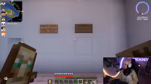00:24:22Zu Beginn des Streams präsentiert der Streamer seine Bauvorhaben aus den vorangegangenen Tagen und zeigt eine Vielzahl von Knöpftüren. Er erwähnt den Bau eines Schafstalls und zeigt auf, was ihm bisher in dem Event gefallen hat. Währenddessen werden die Zuschauer aktiv eingebunden, die ihre Meinung zu den Bauvorhaben äußern und auch Gegenstände spenden. Der Streamer zeigt verschiedene Blöcke, darunter schwarzen Sand und Tintenfischfarbe, und tauscht sich mit der Community über Materialien aus.