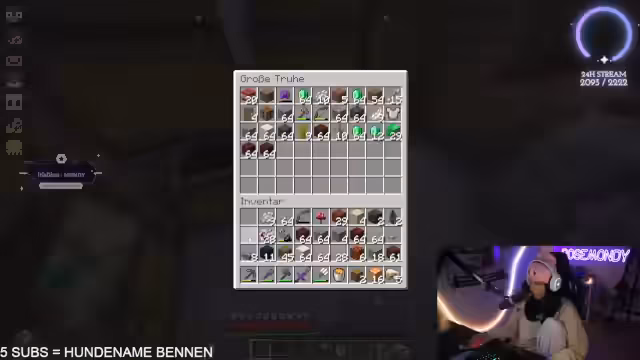 04:40:21Die Stimmung verlagert sich zu humorvollen und surrealen Interaktionen mit virtuellen Haustieren im Minecraft-Mod. Die Namensgebung für Hunde wird zu einem Running Gag, wobei Vorschläge wie 'Ravioli' oder 'Wufo Niza' getroffen werden. Die Tiere entwickeln eigene 'Beziehungen', wie ein One-Night-Stand des namenlosen Hundes, was den Streamer zu lustigen und gleichzeitig dramatischen Kommentaren über die virtuellen Hundedramen anregt und die Chat-Interaktion bestimmt.