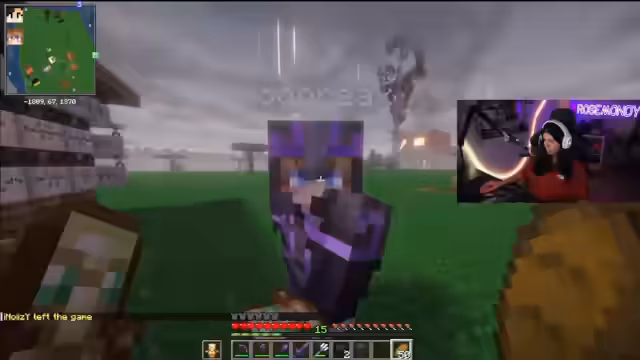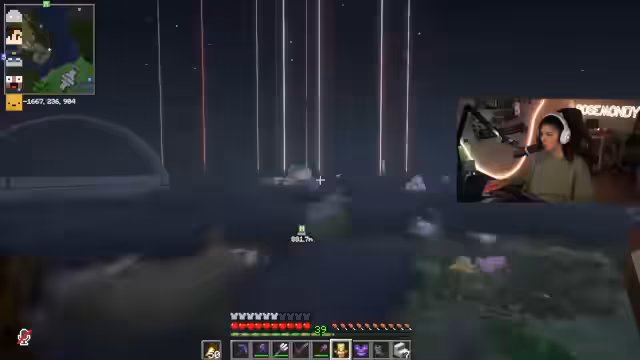13:57:04Rose wird in ein experimentelles Gerät gelockt, das sie unerwartet in den Himmel katapultiert. Sie erreicht eine Höhe von 12.000 Blöcken und erlebt die Welt von oben, wobei sie die Aussicht auf die 'Fortnite-Map' genießt. Der Flug ins All ist ein beeindruckendes Erlebnis, das durch Schnee und rote Wolken eine surreale Atmosphäre schafft. Trotz des Tragens einer Elytra erleidet Rose Fallschaden, was zu einer Diskussion über die richtige Landetechnik führt. Nach der Landung findet sie sich bei der Statue einer Frau wieder, die als 'Merleperle' identifiziert wird. Dieses Abenteuer zeigt die kreativen und oft humorvollen Experimente, die auf dem Server durchgeführt werden, und unterstreicht die Vielfalt der Spielerlebnisse. Die unerwartete Reise und die beeindruckende Aussicht sind zentrale Elemente dieses Abschnitts.