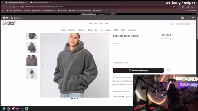 10:29:29Der Streamer ruft seine Zuschauer dringend auf, für ihn als 'Newcomerin des Jahres' zu voten, da das Voting nur noch bis Mitternacht läuft. Er bittet darum, den Link im Chat zu nutzen und seine Stimme abzugeben. Anschließend kündigt er eine Kooperation mit Snipes an, bei der er 1000 Euro an Kleidung an seine Community verschenken wird. Zehn Personen, neun davon von ihm ausgewählt und eine live im Stream, erhalten jeweils einen Gutschein im Wert von 100 Euro. Er betont die Ehre, mit Snipes zusammenzuarbeiten, da jeder die Marke kennt. Es wird ein Community-Mitglied namens Max vorgestellt, der sich einen Carl Carney Pulli oder eine Nike Jogginghose aussuchen darf. Der Chat hilft bei der Entscheidung, und Max entscheidet sich für den Hoodie und zusätzlich Socken für die restlichen 10 Euro. Währenddessen bereitet sich der Streamer Essen zu, das er mit Trüffelmayonnaise lobt.