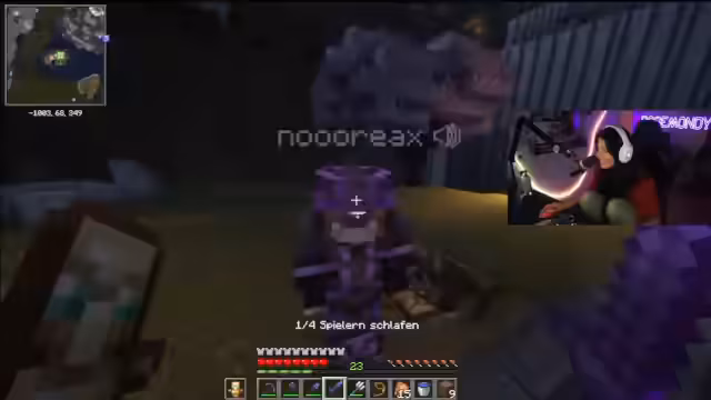 13:02:49Die Streamerin entdeckt, dass ihre Hunde während ihrer Abwesenheit getötet wurden. Es wird erklärt, dass Papa Platze oder Kevin die Hunde absichtlich von einer Mauer fallen ließen. Kurz darauf kommt es zu technischen Problemen im Spiel: Ein Creeper platzt nicht, und das Spiel stürzt ab. Nach dem Neustart des Spiels gibt es ein Missverständnis bezüglich des Todes eines Hundes, den Nori Jax versehentlich geschlagen hat. Die Streamerin ist traurig über den Verlust, aber Nori Jax verspricht, sie in Zukunft zu beschützen. Es wird auch über die Schwierigkeiten bei der Orientierung im Spiel und die Nutzung der Elytra gesprochen, wobei Nori Jax ihr hilft, die Funktionen zu verstehen.