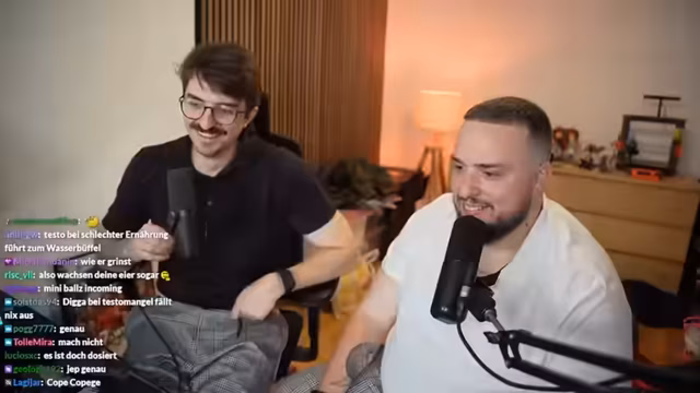 00:20:41Ein zentraler Teil des Streams ist eine sehr persönliche Diskussion über Gesundheitstests. Nachdem der Streamer Blutwerte hat checken lassen, stellt sich heraus, dass er einen Testosteronmangel, einen Vitamin-D-Mangel sowie einen Vitamin-B12-Mangel hat. Dies führt zu einem detaillierten Austausch über die verschriebenen Medikamente und deren Kosten. Insbesondere die Testosteron-Creme wird ausführlich besprochen, inklusive Anwendungsmethode, möglicher Nebenwirkungen und einem humorvollen Vorschlag, diese im Stream zu 'testen'. Dies zeigt den offenen und persönlichen Umgang des Streamers mit diesem Thema.