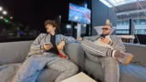 04:47:52Bei der Ankunft in den Studios zeigt sich erneut ein technisches Problem: das HDMI-Kabel ist nicht verbunden, ein klassischer Fehler, der schnell behoben wird. Nachdem das Team seinen Streamingplatz bezogen hat, geht es zur Präsidenten-Lounge. Dabei stellt Kim fest, dass sein wichtiges Badge fehlt. Die Anspannung steigt, da es wichtig ist, souverän als Team aufzutreten. Auch das gemeinsame Bedürfnis, die Toilette aufzusuchen, ist weiterhin präsent und ein wichtiger Gesprächspunkt, der die Stimmung leicht auflockert.