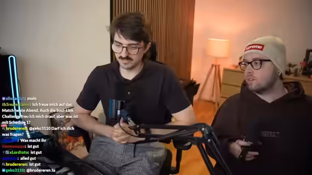 00:01:05Zu Beginn des Streams gibt es technische Anlaufschwierigkeiten. Zunächst ist die Technik unklar und es müssen Kopfhörer und Lautstärken angepasst werden. Später wird das Problem von fehlenden Mikrofonen angesprochen, das nach längerer Bemühung gelöst wird, indem zwei Mikrofone angeschlossen werden, deren Funktionsweise getestet wird. Gleichzeitig wird der Stream als sogenannter 'Presitag' für das anstehende Spiel angekündigt und die ausstehenden technischen Aufgaben wie das Annehmen von Einladungen und das Starten eines gemeinsamen Chats geklärt, um eine gute Basis für den eigentlichen Stream zu schaffen.