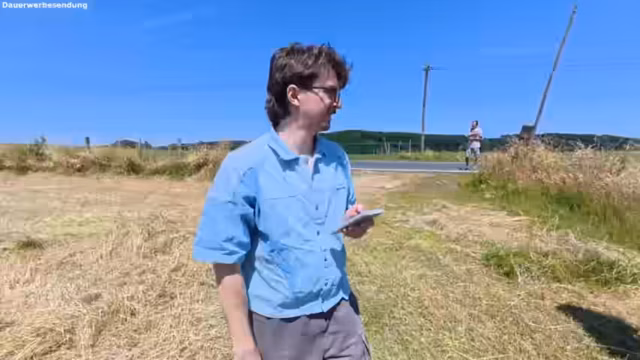 01:40:58Die Übertragung des Streams ist von technischen Instabilitäten geprägt, was zu Bildstörungen und Verbindungsabbrüchen führt. Streamer und Kameramann Kim sind in einem Traktor unterwegs, um eine Landwirtschaft zu besichtigen. Während der Fahrt wird der genaue Standort des Hofes mehrfach diskutiert, bis schließlich Windeck als Region identifiziert wird. Die Beifahrerin Kim beschreibt das Befahren der unebenen Felder als körperlich anstrengend und eine Herausforderung für ihre Konzentration.