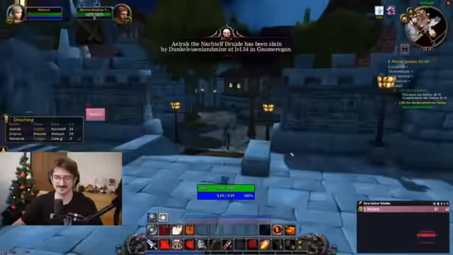11:06:12Der Streamer plant intensiv den Besuch des Dungeons 'Deadmines'. Er sammelt zunächst alle notwendigen Quests ein und diskutiert im Chat die optimale Vorgehensweise. Trotz des großen Drängens des Publikums, den Dungeon sofort zu betreten, lehnt er dies ab, um sich nicht ohne充分的 Vorbereitung in den sicheren Tod zu stürzen. Er betont, dass er den Stream heute nicht als Martyrium sehen wolle und die Vorbereitung wichtiger sei als ein riskanter, schneller Run.