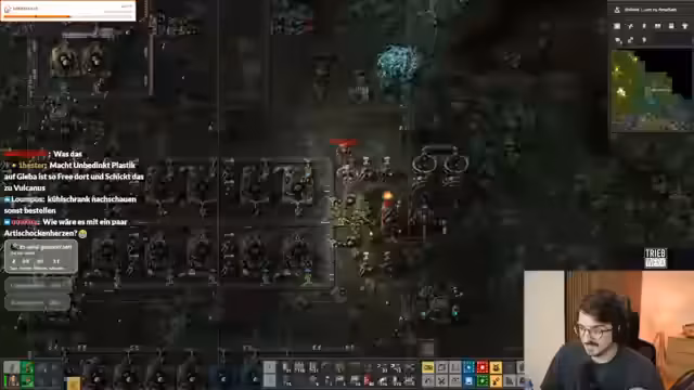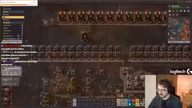 14:04:56Der Streamer äußert den Wunsch, die Gegner endlich zu besiegen und fragt nach den benötigten Materialien, insbesondere Geschützen und grünen Schaltkreisen. Die Produktion von grünen Schaltkreisen wird optimiert, indem Eisenbakterien mit Bioflux behandelt werden, um die Ausbeute zu erhöhen. Es wird befürchtet, dass ein starker Gegner die Geschütze zerstören könnte, bevor sie effektiv eingesetzt werden können. Für den Fall eines Scheiterns wird ein Plan B entwickelt: Rückzug nach Vulkanus, Aufbau einer starken Produktion und Rückkehr mit massiven Raketenangriffen. Es stellt sich heraus, dass für die Geschützproduktion Eisenzahnräder fehlen, was die Produktion verlangsamt. Die Charge Raider, ein Transportschiff, wird erwartet, um mit Schaltkreisen auszuhelfen. Es wird diskutiert, ob die Charge Raider nach Vulkanus geschickt werden soll, um dort Ressourcen zu holen. Schließlich wird beschlossen, sie dorthin zu schicken, um die Produktion zu unterstützen. Die Geschützproduktion läuft langsam an, und es wird überlegt, die Raketenwerferproduktion zu erhöhen. Es wird festgestellt, dass für die Fertigstellung bestimmter Gegenstände Materialien fehlen, obwohl Reparatur-Kits und grüne Schaltkreise vorhanden sind. Die Raketenwerferproduktion wird gespiegelt und gedreht, um sie zu optimieren.