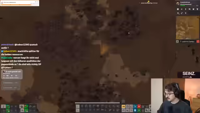 13:54:20Es wird erörtert, wie die Eisenproduktion wiederhergestellt werden kann, um Stahl, Geschütze und Raketen herzustellen. Ein Problem ist, dass die Yumaku-Bären nicht abgeholt werden, was die Produktion behindert. Es wird festgestellt, dass genügend Bären vorhanden sind, aber die Produktion nicht anläuft. Durch die Herstellung eines bestimmten Gegenstands wird die Produktion schließlich in Gang gesetzt. Der Streamer stellt fest, dass solange in einem bestimmten Bereich nichts abgebaut wird, dieser auch nicht angegriffen wird. Kupfer und Eisen werden wieder hergestellt, aber es droht ein erneuter Abbau. Es wird überlegt, Öl von Naufis zu holen, um die Produktion anzukurbeln. Die Ölvorkommen dort sind riesig, aber es muss auf die Verteidigung geachtet werden. Es wird überlegt, Tempomodule in die Ölminen einzusetzen, um die Förderung zu beschleunigen. Das Problem ist, dass kein Öl für Raketentreibstoff vorhanden ist, was den Einsatz von Artillerie verhindert. Es wird besprochen, welche Materialien für die Herstellung bestimmter Gegenstände benötigt werden, insbesondere Eisenplatten und grüne Schaltkreise. Ziel ist es, die Produktion für etwa 20 Minuten stabil laufen zu lassen, um genügend Ressourcen für die Herstellung von Geschützen zu haben.