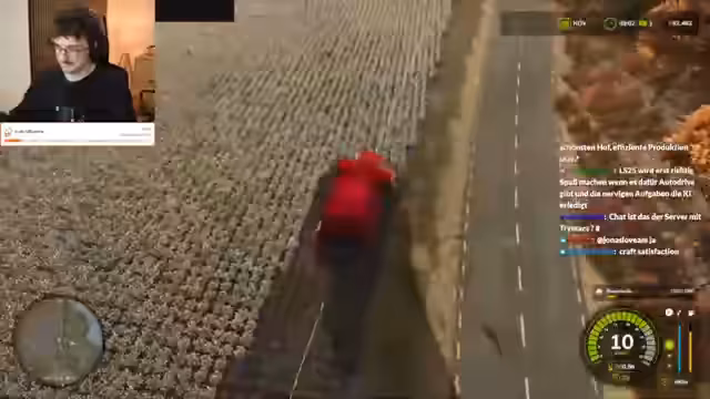 05:36:49Nach einer Prime-Spende und einem Raid wird die Zuckerrübenernte fortgesetzt, wobei die Manövrierfähigkeit der Erntemaschine als schwierig beschrieben wird. Es wird festgestellt, dass die KI ebenfalls erntet. Es wird überlegt, ob ein weiterer KI-gesteuerter Helfer benötigt wird. Die Frage, wo die Zuckerrüben abgeladen werden sollen, wird diskutiert, und es wird festgestellt, dass dies automatisch geschieht. Der Kauf eines Überladewagens speziell für Zuckerrüben wird in Erwägung gezogen und realisiert, um die Effizienz zu steigern. Es wird spekuliert, dass sich die Investition lohnen könnte, wenn die Zuckerrübenernte profitabel ist. Die Reinigungsrate der Rüben wird als gering empfunden. Es wird diskutiert, ob man über die Rüben fahren kann. Die KI-Leute werden als langsam und ineffizient wahrgenommen. Es wird überlegt, die automatische Motorabschaltung zu deaktivieren, um Zeit zu sparen, aber das Risiko wird als hoch eingeschätzt. Es wird befürchtet, dass die KI gegen etwas fährt und einen Crash verursacht. Ein Spieler loggt sich als Admin ein, um Einstellungen vorzunehmen. Es wird festgestellt, dass die KI-Leute nicht helfen und ihre eigenen Wege gehen. Ein Spieler hat bereits 90% Füllstand erreicht und es wird überlegt, ob ein Silo benötigt wird. Die Einstellungen werden gesucht und es wird geprüft, ob das Abladen funktioniert. Es wird festgestellt, dass der Wagen schnell voll ist, aber das Abladen länger dauert.