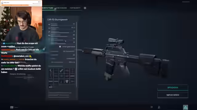 06:08:40Ein wichtiges Thema ist die Wahl und der Bau von Waffen. Der Streamer diskutiert die Präzision und den Schaden seiner K im Vergleich zur AK, die er für sehr gut hält. Er und sein Team diskutieren intensiv über die Bedeutung von Aufsätzen, um Waffen zu optimieren. Dabei werden Begriffe wie Steuerung, Recall Control und das Installieren von Bauteilen wie dem vertikalen Handgriff plus vier genannt, um die Waffeneigenschaften zu verbessern. Es wird auch die Wichtigkeit des Levelns von Waffen durch Tokens erwähnt, um sie auf eine höhere Stufe zu bringen und deren Effektivität zu steigern.