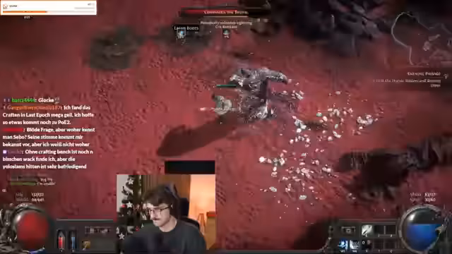 11:15:05Der Streamer navigiert durch die Karten des zweiten Akts und sucht nach dem Boss Baller Baller. Nachdem er den Boss gefunden und besiegt hat, droppt dieser jedoch nur wenig Loot, was ihn verärgert. Danach reist er weiter zur Bossfigur 'Bone Pits', wo er sein Können unter Beweis stellt. Obwohl er den Boss mühelos besiegt, wird er am Ende des Streams von plötzlichen technischen Problemen wie Lag und Verbindungsabbrüchen getroffen, was den Streamer zum Abbruch zwingt.