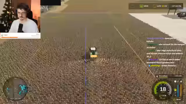 04:29:10Der Streamer spielt den Landwirtschaftssimulator und diskutiert verschiedene Aspekte des Spiels. Er erwähnt den Bau von Windrädern, die seiner Meinung nach den Server entwerten, obwohl sie ihm reich gemacht haben. Er plant, bald einen neuen Server mit Mods zu starten, sobald sie eine Milliarde im Spiel erwirtschaftet haben. Der Streamer zeigt Begeisterung für die Baumwollernte und die damit verbundenen Mechaniken im Spiel, insbesondere die automatische Ballenerzeugung durch KI-Helfer. Er teilt auch mit, dass er Fortnites OG-Season nicht interessiert.