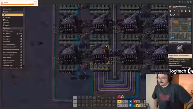00:21:37Die Herausforderungen werden komplexer. Es geht um die Herstellung von blauen Tränken, die Wolfram-Kabit erfordert. Der Streamer ist sich unsicher, ob er es sofort angehen soll. Es werden auch Probleme mit der Chemiefabrik deutlich, die optimiert werden muss. Er zeigt, wie man Pumpen mit Signalen steuert, um automatisch Fässer zu füllen, und erklärt den Prozess des Holmium-Transports.