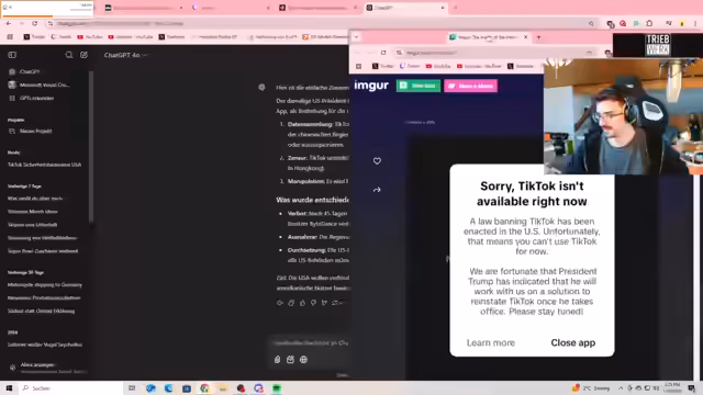 00:06:03Der Stream beginnt mit der Ankündigung, dass heute 'Wir rekten dann' gezockt wird, gefolgt von weiterem Zocken. Es wird überlegt, eine neue Folge von 'Rosins Restaurants' anzusehen oder Factorio zu spielen. Zudem wird ein neuer 'Roadtrip mit Rosin Schossers' erwähnt. Ein weiterer Punkt ist TikTok, da es in den USA gebannt wurde. Kim bereitet etwas vor, um über den TikTok-Bann zu sprechen. Auch der Krypto-Meme-Coin von Trump wird thematisiert. Es wird ein Bild für die WhatsApp-Gruppe gemacht, die als 'Rumatras Wahrheitszentrale' bezeichnet wird. Der Streamer fasst zusammen, dass Trump TikTok aufgrund von Datensammlung, Zensur und Manipulationsgefahr bannen ließ. TikTok wurde am 19. Januar aus dem US-Store entfernt und ist in den USA nicht mehr verfügbar. Der Streamer zeigt sich verwundert darüber, dass die Leute vergessen haben, wer TikTok bannen wollte, und betont, dass dies noch nicht lange her ist. Es wird spekuliert, ob eine europäische SIM-Karte oder der Browser eine Umgehung des Banns ermöglichen. Der Streamer erwähnt, dass Kim die Redaktion für News und Drama übernommen hat. Es wird diskutiert, dass TikTok aus dem US-Store genommen wurde und wie eine entsprechende Fehlermeldung aussieht. Der Streamer erklärt, dass ByteDance gezwungen wurde, TikTok an ein amerikanisches Unternehmen zu verkaufen, was aber nicht geschah, woraufhin alle Apps und Dienste von ByteDance aus dem Markt genommen wurden. Dies betrifft auch CapCut und Marvel Snap.