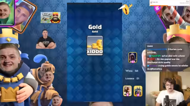 06:45:19Die Diskussion dreht sich um die Entwicklung von Clash Royale-Accounts und den Unterschied zwischen Free-to-Play und investierenden Spielern. Der Streamer erwähnt, dass er in seinem Account über 250 Euro investiert habe, um Karten zu maximieren und schnell voranzukommen. Im Gegensatz dazu wird die Herausforderung eines Free-to-Play-Accounts beschrieben, bei dem der Spieler hart grinden muss, um an Karten und Trophäen zu gelangen. Es werden Ziele wie das Erreichen von 15.000 Trophäen genannt und die Wichtigkeit von Pass-Belohnungen und Challenges wird betont, um den Account effizient zu leveln.