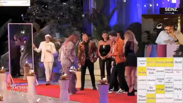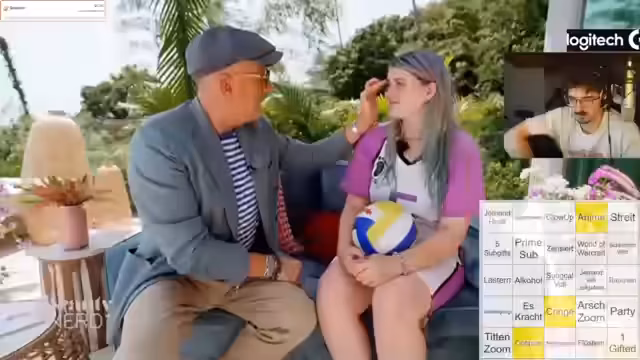 00:54:16Die Teams beschreiben Gegenstände aus der Welt des jeweils anderen, ohne sie direkt zu benennen. Es geht um Begriffe wie Augenbrauen-Schere, Augenbrauen-Rasierer, Boxsack, Tampons, Diadem und Lockenstab. Sam ist laut dem Chat lasch. Der Streamer betont, dass Prime-Subs iconic sind. Es wird diskutiert, wie man Tampons umschreiben kann, ohne das Wort Frau zu verwenden. Joelle versucht, Sam zu helfen, aber er kennt die Begriffe nicht. Der Streamer findet, dass WLAN in Sams weißem Shirt gut aussieht. Es wird darüber gesprochen, wie man ein Handy ohne Steckdose auflädt (Powerbank). Der Streamer kommentiert, dass die Wahl wohl Qual bereitet.