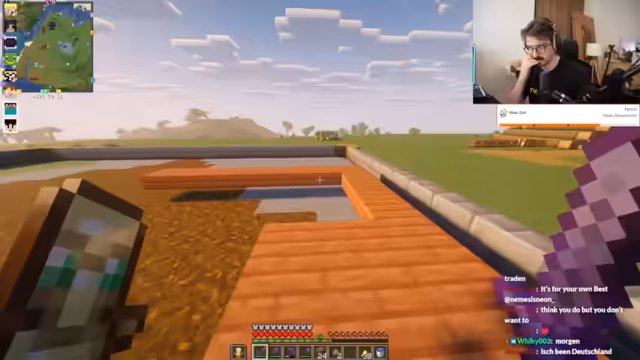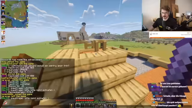 08:12:30Es wird festgestellt, dass ein Spieler namens „Reh“ aus dem Spiel getimt wurde, was zu Spekulationen führt, ob er nicht mehr mitspielen möchte oder konzentriert am Bauen ist. Ein anderer Spieler berichtet von Problemen mit seinen Shader-Einstellungen, die dazu führten, dass das Spiel auf „Todes-Ultra“ eingestellt war und nur 24 FPS erreichte. Nach Anpassungen konnte die Bildrate auf 50-60 FPS verdoppelt werden. Es wird diskutiert, ob die Herzfrequenz der Maus zu Lags führen kann, was als „extremer Bait“ abgetan wird. Die Möglichkeit, dass eine spezielle Nvidia-Mod zur Optimierung von Grafikkarten installiert ist, wird angesprochen, was den Vorteil eines anderen Spielers erklären könnte. Es wird scherzhaft dazu aufgerufen, „free no-reacts“ in den Chat zu schreiben, um Mojang zu motivieren, auf die Probleme zu reagieren.