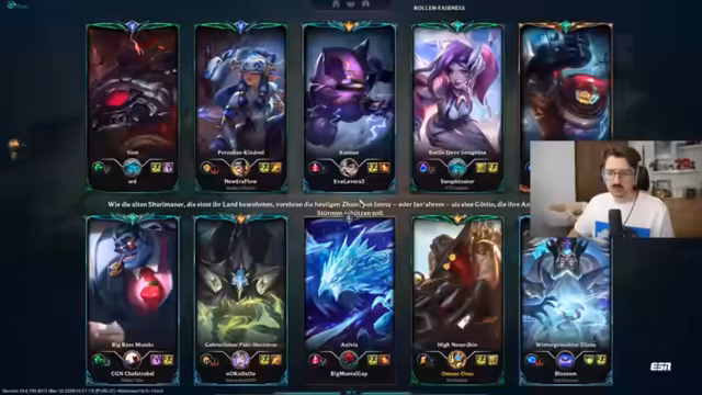 00:08:44Der Streamer spielt die Ruthlock Challenge, eine eigene Pokémon-inspirierte Herausforderung für League of Legends. Er berichtet über seine Elo und seine Gegner von gestern (Platin 1 vs. Emerald 3). Er analysiert ein gespieltes Match, in dem er neun Tode hatte, und gibt an, das Spiel besser hätte spielen müssen. Trotz der hohen Todeszahl bleibt er humoristisch und bleibt bei der Challenge.