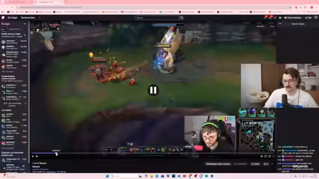 04:41:30Ein neues League-Spiel beginnt, in dem der Streamer mit seinem neuen Support 'Silien' im Bot-Lane gegen ein starkes Gegner- Duo antreten muss. Inzwischen entwickelt sich im Discord-Chat eine heftige Konfrontation zwischen den Spielern. Der Streamer und seine Mitspieler sind frustriert über den fehlenden Input eines Teamkollegen, der im Spiel 'Mundo' spielt, während sich im Voice-Chat persönliche Beleidigungen häufen und die Atmosphäre zunehmend angespannt und unorganisiert wird.