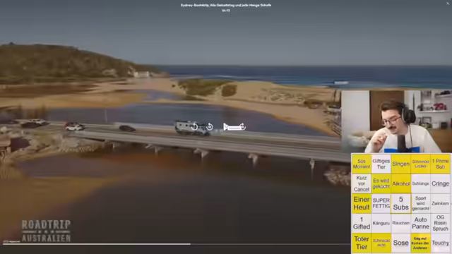 00:37:42Der Streamer schaut eine Roadtrip-Folge von Rosin und spielt parallel Bingo. Die Doku handelt von einer Reise durch Australien. Die drei Protagonisten besuchen eine Insel, essen an einem typischen Strand-Snack und erleben eine Bootsfahrt. Der Streamer bewundert die美景 und die entspannte Atmosphäre und stellt die Frage, ob es die letzte gemeinsame Reise der Freunde sein könnte.