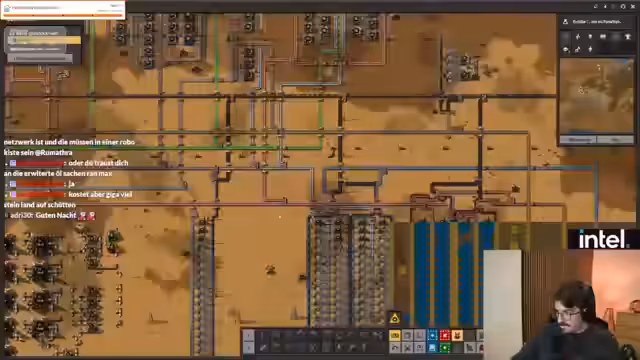 11:15:04Die Basis wird weiterhin angegriffen, wobei Level-3-Gegner die Verteidigung durchbrechen. Der Streamer wird getötet und versucht, die Gegner in die Geschütze zu locken. Es wird beschlossen, die Mauer zu bauen, sobald die Produktion roter Schaltkreise abgeschlossen ist. Es wird überlegt, ob Bauroboter und Hangare gebaut werden sollen. Die Ölversorgung für die Flammenwerfer wird sichergestellt. Der Streamer bemerkt, dass die blauen Tränke fertig sind und dass die Zockung sehr gut läuft. Es wird überlegt, ob die Logistik-Roboter schon verfügbar sind und wie Solarpanels hergestellt werden können. Der Mauerbau im Osten wird geplant, wobei die modulare Rüstung verstärkt werden soll. Der Streamer wird erneut angegriffen und benötigt Mauern, die er vom Partner holt. Ein Raid wird erwähnt, und der Streamer bedankt sich für die Unterstützung. Es wird über einen extrem scharfen Chip gesprochen, den jemand gegessen hat, und der Streamer äußert Respekt vor dieser Leistung. Es wird überlegt, welche Forschungen als nächstes durchgeführt werden sollen, wobei Lichtbeamungöfen und Zugnetze in Betracht gezogen werden.