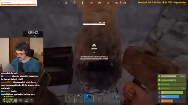 05:32:10Nach dem verheerenden Raid und dem Verrat widmet sich die Gruppe dem Wiederaufbau ihrer Basis. Sie legen Wert auf Metallwände und Munitionsproduktion, um zukünftige Angriffe besser abwehren zu können. Gleichzeitig versucht der Streamer, Frieden mit den überlebenden Spielern Neusi und Jen zu schließen. Er bietet ihnen einen Teil des geraubten Loots an und möchte die feindseligen Beziehungen beenden, doch es bleibt Spannung, da Misstrauen weiterhin die Atmosphäre prägt.