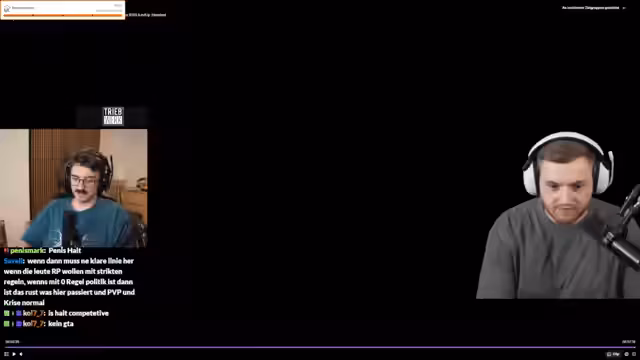 08:57:02Es gibt eine allgemeine Diskussion über den Zustand des Rust-Servers und die Devs. Zavix kündigt an, sich komplett rauszuhalten. Es gibt eine große Debatte über den Mangel an Kommunikation und RP im Vergleich zum reinen PvP. Ein Teilnehmer Max äußert seine große Enttäuschung über wortloses Töten und denkt daran, den Server zu verlassen. Trimax äußert die Ansicht, dass Rust für Streamer schwierig ist, da es immer Verlierer gibt.