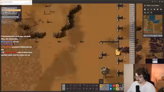 10:38:27Es wird ein Angriff auf den Wurm mit Angriffsrobotern geplant, jedoch ohne Munition. Der Angriff scheitert, da der Wurm sich zu schnell heilt. Es wird Uranmunition in Betracht gezogen, was jedoch lange dauern würde. Die Möglichkeit eines Turret Spams wird diskutiert, um den Wurm zu besiegen. Es wird beschlossen, eine neue Produktion für panzerbrechende Munition aufzubauen. In der Zwischenzeit wird überlegt, welche anderen Optionen zur Verfügung stehen. Es wird festgestellt, dass Klippensprengstoff einfach herzustellen ist, was die Möglichkeit eröffnet, mehr Platz zu schaffen. Der Bau einer Geschützproduktion auf dem Kohlefeld wird in Erwägung gezogen, obwohl dies bedeutet, dass alles später abgerissen werden muss. Es wird überlegt, wie viele Panzer auf einmal hochgeschickt werden können. Es wird festgestellt, dass die Milone Jones sich wieder im Umkreis des Nauwies-Planeten befindet. Es wird über den Gesundheitszustand diskutiert, wobei vermutet wird, dass eine Krankheit vorliegt, die jedoch durch das viele Zocken nicht schlimmer wird. Es wird festgestellt, dass der Wurm 2400 HP pro Sekunde heilt, was einen gemeinsamen Angriff erfordert. Es werden vier Panzer bestellt und die Munitionsproduktion vorbereitet.