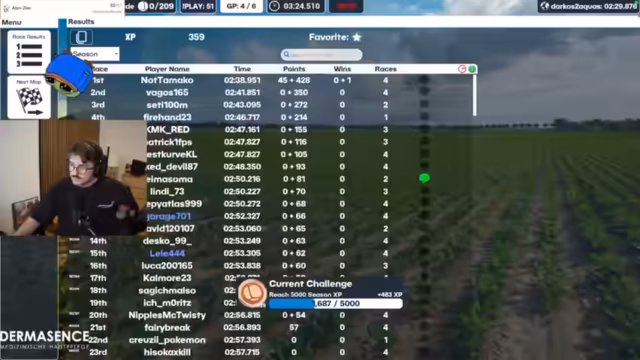 01:34:53Stream startet ein Gewinnspiel für ein Dermasens-Produktpaket. Im Paket sind verschiedene Produkte wie Reinigungsschaum, Tonic-Gesichtswasser, Gelcreme und Sonnenschutz-Gel. Stream macht sechs Runden im Spiel Autofill und der Gewinner am Ende erhält das Paket. Es wird ein Grand Prix mit 16 Maps gespielt, um den Gewinner zu ermitteln. Stream bittet die Teilnehmer, bei einem Mod nach dem Gewinn zu melden. Auch werden die Produkte noch einmal vorgestellt und ihre Vorteile für die Hautpflege erklärt.