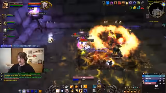 05:04:52Der Streamer spielt World of Warcraft und kommentiert intensiv sein Gameplay. Er diskutiert seine Talente und Fähigkeiten wie das Flammenschild und den Segen des Refugiums, während er durch eine Dungeon-Instanz zieht. Er analysiert die Gegner, strategische Pulls und den Schaden, den er verursacht, und gibt Ratschläge zur Vorgehensweise, insbesondere im Vergleich zum normalen und dem schwierigen Heroic-Modus. Der Fokus liegt auf der reibungslosen und effektiven Bewältigung der Mobs und Bosskämpfe.