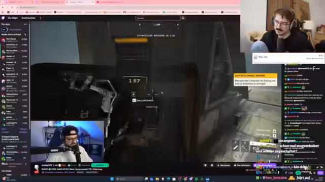 01:55:17Der Streamer und sein Chat diskutieren über technische Probleme mit Stream-Elementen, insbesondere das Ausbleiben von Follower-Benachrichtigungen. Es wird vermutet, dass die benutzten Elemente abgekupfert sein könnten. Während einige Zuschauer berichten, dass Stream-Elements bei ihnen funktioniert, bestätigt der Streamer, dass bei ihm keine Benachrichtigungen eingehen. Die Situation führt zu humorvollen, aber auch frustrierten Kommentaren über die Zuverlässigkeit der Streaming-Tools. Es wird auch über die Kosten von Abonnements gesprochen, die als „turbo teuer“ empfunden werden, was die finanzielle Seite des Streamings beleuchtet.