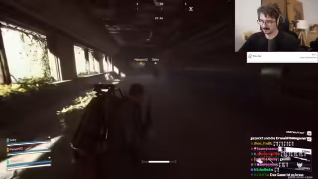03:22:14Die Spieler sind bereit, Arc Raiders zu starten, aber es gibt Schwierigkeiten beim Einladen in die Gruppe. Der Streamer muss warten, bis er eingeladen wird, da er selbst niemanden einladen kann. Währenddessen wird die Grafik des Spiels gelobt. Es wird diskutiert, ob es im Spiel 'Wipes' geben wird, also ob der Fortschritt regelmäßig zurückgesetzt wird. Der Streamer äußert die Befürchtung, dass das Spiel nach zwei Monaten mit 'Full Gear' weniger Spaß machen könnte, die ersten Wochen aber 'richtig geil' sein werden. Schließlich gelingt es der Gruppe, eine Mission zu starten. Sie beschließen, zuerst zu looten und vorsichtig zu sein, da sie nicht wissen, ob sie auf andere Spieler treffen werden. Die erste Mission führt sie zu einer Wasseraufbereitungsanlage, wo sie nach Beute suchen und sich auf mögliche Kämpfe vorbereiten.