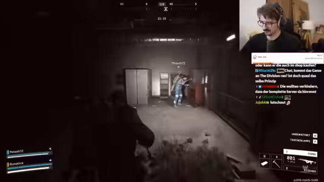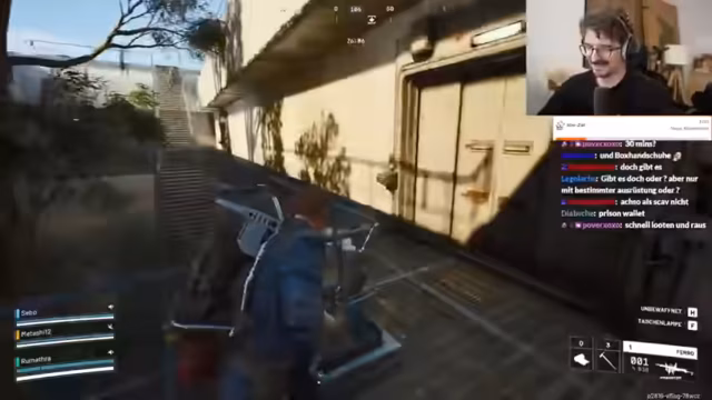 04:31:08Die Spieler betreten ein Gebäude, das viel hochwertigen Loot verspricht. Sie planen ihren Weg durch das Gebäude und suchen nach einem speziellen Raum im Keller, der für seinen Loot bekannt ist. Während der Erkundung kommt es zu einem Kampf mit einem Gegner, der eine Spinne sein könnte. Die Spieler müssen sich heilen und weiter vorrücken. Sie entdecken, dass ein früherer Trick, sich an Vorsprüngen festzuhalten, um Stürze zu überleben, möglicherweise gepatcht wurde, was zu einer riskanten Situation führt. Einer der Spieler opfert sich, um den Trick zu testen, und stellt fest, dass es doch noch funktioniert. Nach einem weiteren Kampf und dem Looten von Kabeln und anderen Gegenständen, werden sie von Gegnern überrascht und getötet. Trotz des Rückschlags sind sie entschlossen, direkt wieder einzusteigen.