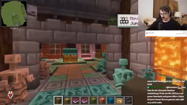 00:32:46Die Spieler diskutieren über verschiedene Aspekte des Minecraft-Gameplays, darunter das Leveln und Verzaubern von Gegenständen. Es wird die Schwierigkeit des Levelns in der 'Neuzeit' von Minecraft angesprochen, da die 'altmodischen XP-Farmen im Nether' nicht mehr so effektiv sind. Ein Spieler fragt nach einer Möglichkeit, Tränke zu erhalten, ohne komplizierte Wege gehen zu müssen. Ein anderer Spieler bietet an, Zugang zu einer Farm zu gewähren, die durch einfaches Knopfdruck Tränke liefert, was als große Zeitersparnis angesehen wird. Die Gruppe spricht auch über die Beschaffung von Netherwarzen und die damit verbundenen Risiken in Festungen. Die Teamdynamik wird durch die Anwesenheit von 'Metashi' und 'G-Time' belebt, die sich über ihre Rollen und Aufgaben im Spiel austauschen. Es wird über das Sammeln von Holz, insbesondere 'Darkwood', gesprochen und die Notwendigkeit von 'Protection 4'-Büchern für Verzauberungen. Die Spieler necken sich gegenseitig mit 'Arbeitszeitbetrug'-Vorwürfen und humorvollen Anspielungen auf ihre Spielgewohnheiten. Die Diskussion zeigt eine Mischung aus ernsthafter Spielplanung und lockerem Geplänkel, das die Stimmung im Stream auflockert.