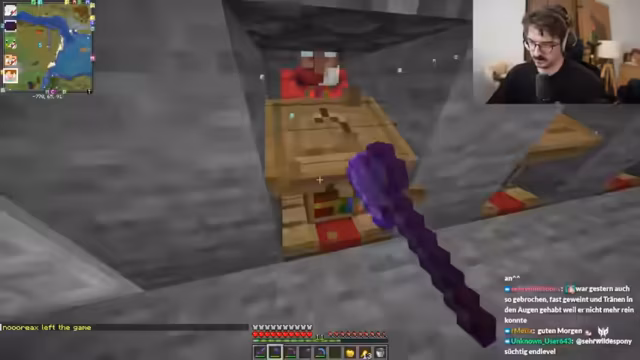 00:49:33Mitashi tritt dem Stream bei, und die Gruppe begrüßt ihn herzlich. Es wird über den Plan gesprochen, um 10:30 Uhr in 'Aki Radies' zu gehen, um 'nachzuholen', was sich später als 'Arc Raiders' herausstellt. Der Plan ist, 'Craft Attack' zu 'melken', bis die großen Streamer online kommen, und sich dann zu verpissen, um nicht wieder 'Hausmeister' zu sein. Diese Strategie wird humorvoll als 'Betriebsgeheimnis' bezeichnet, das nicht zu oft ausgeplaudert werden sollte. Die Spieler diskutieren über ihre Bauprojekte im 'Sexhain' und 'Dowsinghof'. Es wird festgestellt, dass der 'Sexhain' nur gebaut werden kann, wenn Mitashi anwesend ist, während der Dowsinghof alleine vorangetrieben wird. Dies führt zu humorvollen Seitenhieben auf Mitashis Anwesenheit und Baufortschritt. Die Gruppe arbeitet gemeinsam an der Beschaffung von 'Protection 4'-Büchern für Verzauberungen, indem sie einen Villager immer wieder neu platziert, bis er das gewünschte Buch anbietet. Diese Aufgabe wird als 'Sklavenarbeit' bezeichnet, die aber notwendig ist, um die Rüstungen zu verbessern. Es wird auch über die Beschaffung von 'Dark Oak Saplings' gesprochen, die für den Holzfarm-Prozess benötigt werden. Die Interaktionen sind geprägt von gegenseitigem Necken und humorvollen Kommentaren, die die Teamarbeit und den Fortschritt im Spiel begleiten.