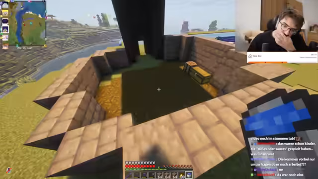 06:15:31Ein Spieler berichtet von seinem ambitionierten Minecraft-Projekt: dem Nachbau der Loilmap im Maßstab der Minecraft-Figuren. Er ist derzeit mit dem Terraforming beschäftigt und benötigt dafür riesige Mengen an Blöcken, darunter 40.000 Cleanstone, Endesite und Cobblestone. Das Projekt umfasst eine Fläche von 15x15 Chunks und wird größtenteils alleine gebaut, mit minimaler Hilfe von Max und Niki beim Terraforming. Er zeigt seinen Fortschritt und ein großes Loch, das bereits ein Drittel bis ein Fünftel der Tiefe bis zum Bedrock erreicht hat. Er vergleicht die Größe seines Lochs mit dem der 'Säulen' und betont, dass sein Loch 50% größer ist. Das nächste Ziel ist der Bau von Portalen, die 100 Blöcke über dem Boden platziert werden sollen, um die Wasserströme zu kontrollieren. Es handelt sich um ein gigantisches Vorhaben, das viele Nether-Portale in der Größe von Magma-Blöcken umfassen wird.