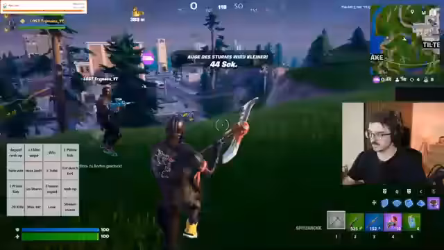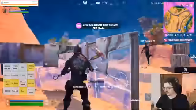00:10:40Nach technischen Vorbereitungen starten die Streamer in den Modus 'Ranked Reload' für Fortnite. Dieser Modus ist geprägt von einer permanenten Wiederbelebung, solange ein Teammitglied noch lebt, und einer Karte, die überladen mit Waffen und Items ist. Die anfänglichen Spiele sind hektisch, da beide Spieler sich erst wieder ins Spiel einspielen müssen und mit ungewohnten Waffen experimentieren. In der ersten Runde erreichen sie eine hohe Zahl an Kills und steigen in der Rangliste von Silber auf Gold.