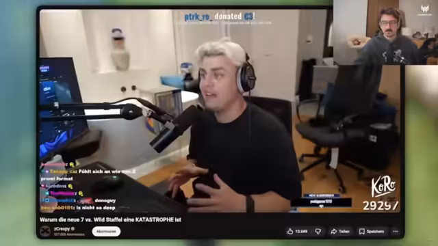 00:09:18Nach einem kurzen Intermezzo mit Reaktionen auf verschiedene Trailer, unter anderem zu einer neuen Staffel von Manhunt, widmet sich der Streamer eingehend dem aktuellen Status des Formats '7 vs. Wild'. Er analysiert die drastisch gesunkenen YouTube-Aufrufzahlen, insbesondere im Vergleich zu früheren Staffeln. Als Hauptgründe für den Popularitätsverlust identifiziert er die Veräußerung des Formats an die Produktionsfirma CarlyVision, den Wegfall des ursprünglichen Erfinders Fritz als zentrale Figur und die Einrichtung eines Prime-Zwangs für die neue Staffel.