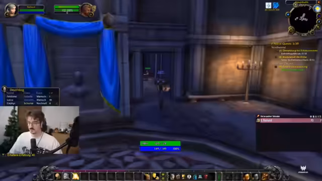 00:01:54Der Stream beginnt nach technischen Startschwierigkeiten, bei denen die Kamera und die Tastatur Probleme bereiten. Streamer rumathra begrüßt das Publikum und entschuldigt sich für seine späte Anwesenheit aufgrund einer Frühschicht. Er kündigt das Hauptthema des Streams an, das "Project Speranza", ein World of Warcraft Classic Hardcore Projekt, bei dem alle Teilnehmer von Level 1 anfangen und bei einem Tod der Charakter endgültig gelöscht wird.