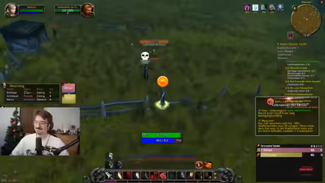 12:10:12Ein kritischer Moment ereignet sich während des Kampfes gegen Gegner in Westfall. Der Streamer, der als Heilpaladin agiert, macht einen schwerwiegenden Fehler. Er nutzt seinen Segen des Schutzes (Bubble), was die Aggro der Gegner sofort auf den Tank, Kutscha, lenkt. Da er den gestressten Kutscher nicht rechtzeitig heilen kann, stirbt dieser. Der Streamer macht sich selbst Vorwürfe und bezeichnet es als 'straight up Skill-Issue', was zu einer emotionalen und amüsanten Reaktion im Chat führt. Dieser Zwischenfall verdeutlicht die Herausforderungen des koordinierten Spielens und die hohen Stakes im Hardcore-Modus.