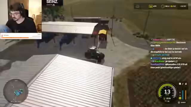 04:14:05Der Streamer nutzt eine KI für die Feldarbeit, während er andere Aufgaben erledigt. Er diskutiert über die Schwierigkeiten der KI, clean ein- und auszuparken, und kontrastiert dies mit seinen eigenen Fähigkeiten. Im Chat wird er wegen seiner geisteskranke Gabelstaplerfähigkeiten gelobt und er erhält Komplimente von langjährigen Spielern, was als sehr befriedigend empfunden wird. Eine Idee für Twitch-Drops als Traktor-Unlock wird als extrem gestört und potenziell spielerisch eskalierend bezeichnet.