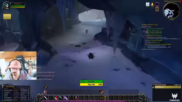 00:00:52Der Streamer begrüßt mit Frohe Weihnachten und erwähnt eine erneute Änderung seines Spielplans. Er spielt stattdessen einen Schurke nach Rücksprache mit Kevin und Rezman. Im Dungeon sterben alle Charaktere bis auf Ratte Tonin, was mit Merry Christmas kommentiert wird. Der Fokus liegt auf der Gruppenzusammenstellung und dem Grind-Erfolg von Spielern, die Level 60 erreichen.