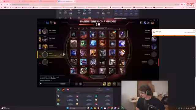 05:58:29Die Spieler bereiten sich auf das nächste Spiel vor und überlegen sich die Champion-Picks. Caitlyn wird als First Pick in Betracht gezogen, gefolgt von Jinx oder Kai'Sa. Auch Miss Fortune wird als Option genannt, obwohl sie als „langweilig“ abgetan wird. Es wird vermutet, dass der Gegner noch einen Giveaway macht und dann für Trash Talk in den Channel kommt, was den Spielstart verzögern könnte. Die Diskussion über Champion-Fähigkeiten geht weiter, wobei Kai'Sa für ihren variablen Schaden gelobt wird. Es wird auch über Mundo gesprochen, der mit AP-Schaden überraschen kann, wenn keine Magieresistenz gebaut wird. Die Wartezeit auf den Start des Spiels wird genutzt, um letzte Absprachen zu treffen. Es stellt sich heraus, dass ein Spieler namens Willi noch Coaching von Danny erhält, was zu Unmut führt, da dies den Start verzögert. Es wird scherzhaft über Willis „Technikprobleme“ gesprochen, die als Ausrede für das Coaching angesehen werden. Die Bann-Phase beginnt, und es wird über mögliche Banns wie Lilia, Nasus, Seraphine und Ivern diskutiert. Die Gegner bannen Zed, was als nicht überraschend empfunden wird.