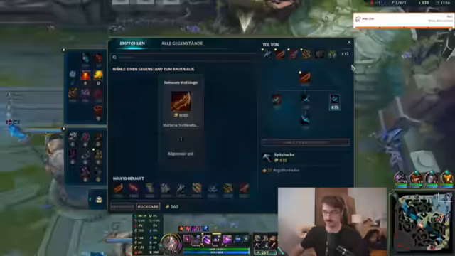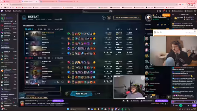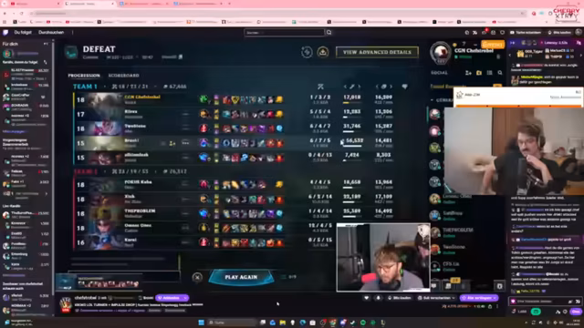 02:48:05Ein Spieler berichtet von einer verlorenen Aram-Partie, in der sein 'Thresh' nach 15 Minuten leaved, was zu einer kompletten Zerstörung der Toplane und einem 'Arschfick' durch den Gegner führte. Er beklagt sich darüber, dass 'Mel' ihn mit einem 'Level 30 Account' 'gedifft' hat, was er als 'disgusting' und ein Problem von 'Riot' bezeichnet. Es wird die Möglichkeit besprochen, gemeinsam in der 'Solo-Queue' zu spielen, da beide Spieler im 'Gold'-Bereich gerankt sind. Die Nostalgie für alte 'League of Legends'-Seasons und Skins kommt auf, wobei der Streamer erzählt, wie er als 16-Jähriger Zeitungen austrug, um sich 'PaySafe-Cards' für Skins zu kaufen. Er gesteht auch eine 'dunkle Zeit' in 'CS' mit 'Kisten' und 'Gambelsucht' ein. Die Sorge, dass 'Kuba' heute das Spiel 'Solo verlieren' könnte, wird geäußert, da er möglicherweise 'raven' war und nicht ausgeschlafen ist. Die Strategie gegen 'Chef' wird geleakt: seine besten Champions bannen, ihn zweimal ganken, um ihn zu tilten, da er seine Persönlichkeit nicht ändern kann. Der Streamer betont, dass er heute nur gewinnen kann, sei es durch den Turniersieg oder durch einen freien Abend.