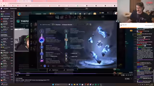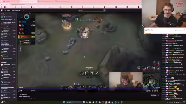 02:38:27Es wird die Frage aufgeworfen, ob 'Blackfire Trotsch Ori' in Aram effektiv ist oder ob eine 'Burst Ori' mit 'One-Shot' und 'Loons' besser wäre. Die Spieler diskutieren die richtige Herangehensweise in Aram, wobei betont wird, dass 'Aram all in' ist und wer nur 'hinten rumpimmelt' und 'Skillshots schießt', als 'Fotze' bezeichnet wird. Es wird über 'Super-Server' in China gesprochen, auf denen angeblich nur 'Diamond Plus'-Spieler spielen und das Niveau extrem hoch ist. Dort picken alle 'Assassins' oder 'Flip-Champions' und 'fighten Level 1', um entweder zu sterben oder zu gewinnen, was zu 'FF 15. Minute' führt. Dies wird als 'Skillcheck' beschrieben, um zu sehen, ob man besser ist als der Gegner. Der Streamer äußert seine Freude auf die Wintermonate, da er das 'Scheißwetter' zum Zocken bevorzugt, obwohl es für das 'Gym' weniger ideal ist. Er reflektiert über die Anstrengung eines 18-stündigen Streams, bei dem er 'geschwitzt' hat und fast verloren hätte. Die Idee eines 'Social Media Detox' und eines 'Fitnesscamps' in Thailand wird in den Raum gestellt.