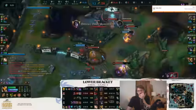 03:22:53Die Spieler bereiten sich auf das Best-of-One-Spiel vor und diskutieren die Anwesenheit von Teammitglied Kuba. Es wird erwähnt, dass Kuba noch nicht vollständig bereit ist, was zu einer entspannten Atmosphäre führt. Die Teammitglieder tauschen sich über ihre Champion-Bans aus, darunter Illaoi, Lissandra und Sett, die als starke Picks der Gegner identifiziert wurden. Es wird auch über die Möglichkeit gesprochen, Malzahar zu bannen, falls die Gegner ihn nicht picken. Die Strategie für die Bot-Lane mit Caitlyn und Karma oder Bard wird festgelegt, wobei Bard aufgrund seiner Ult und der Fähigkeit, Chef Strobel abzufangen, bevorzugt wird. Die Spieler sind zuversichtlich und betonen, dass sie nicht vorhaben zu verlieren.